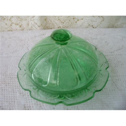 <tr><td>Title:I GREEN CHERRY BLOSSOM BUTTER DISH VINTAGE</td></tr>