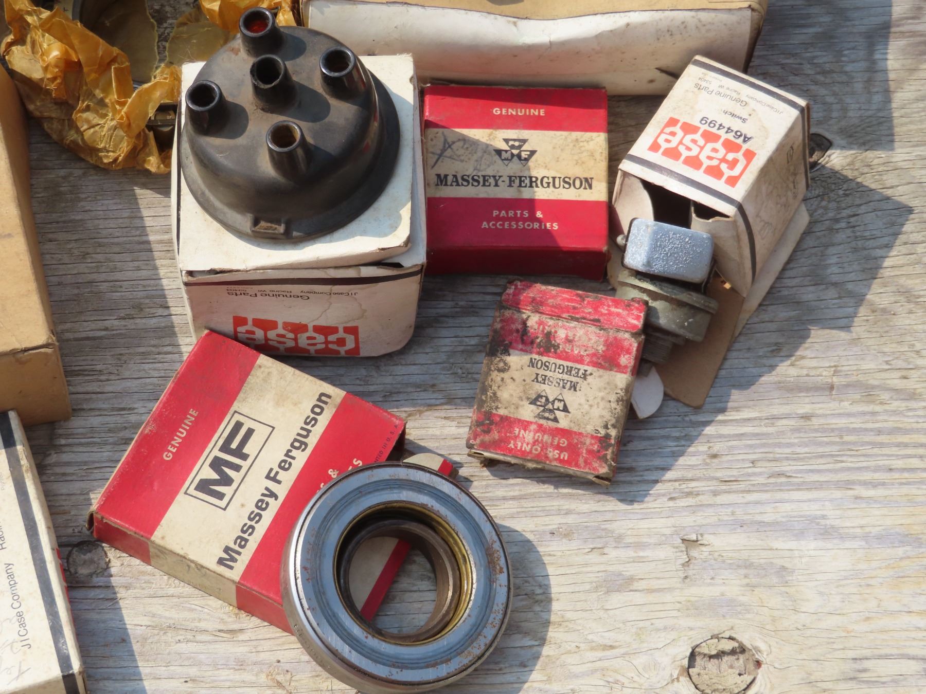 I.H. , Case, & Massey Furgerson assorted parts. (1 or two boxes appear to be new)