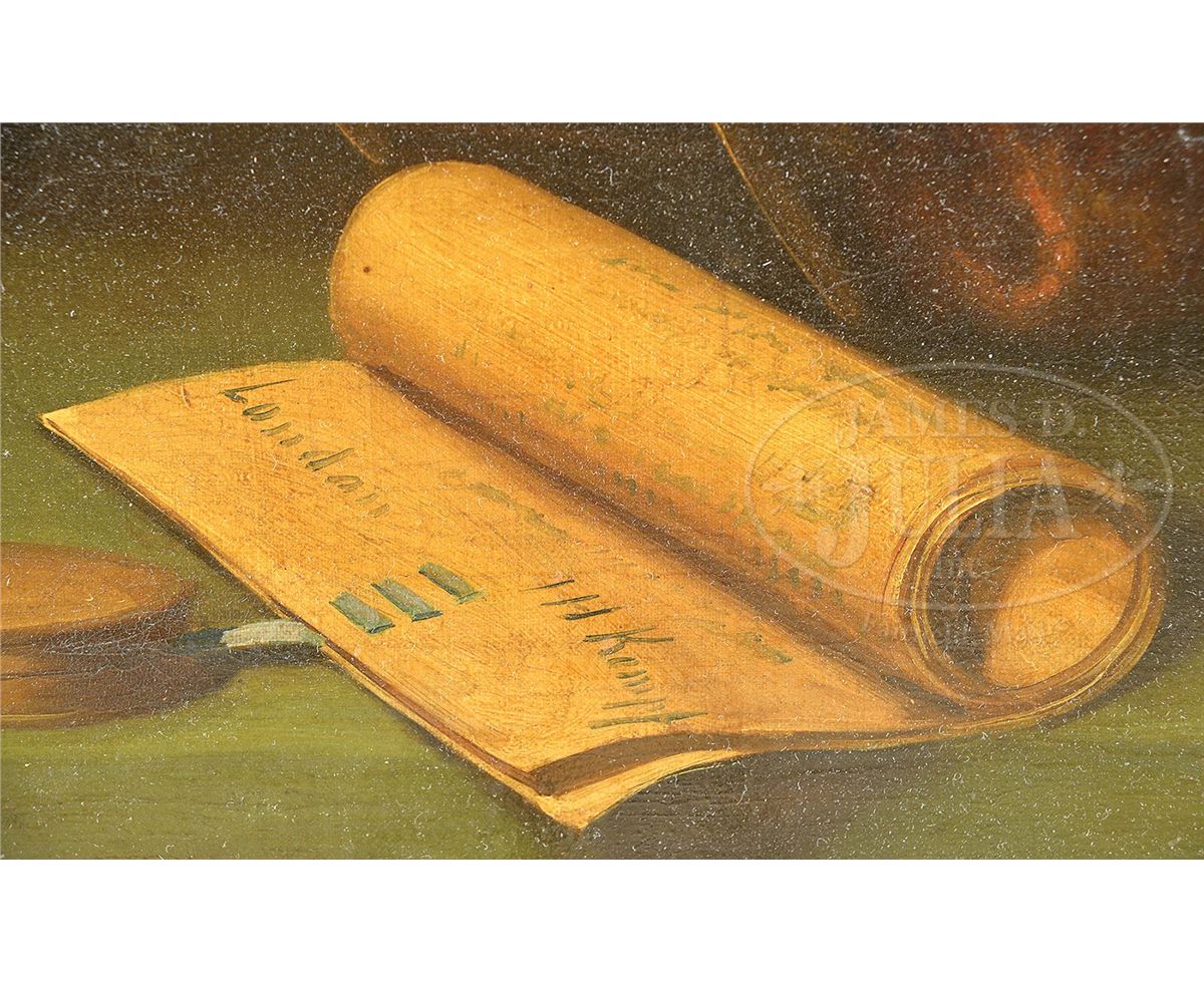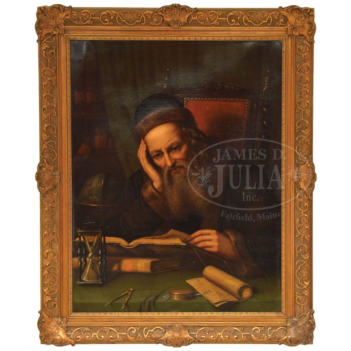 Oil on canvas Housed in a fine gesso decorated frame, on verso is a Frost & Reed Ltd London label dated 1936 Signed, we believe, in the rolled paper in the lower right corner "London, IH Kempf" The work is in the Manner of Isidor Kaufmann (Austrian/Hungarian, 1853-1921) SIZE: 36" x 28". Overall: 43-3/4" x 35-3/4". CONDITION: This varnish, craquelure, lined 9-90308