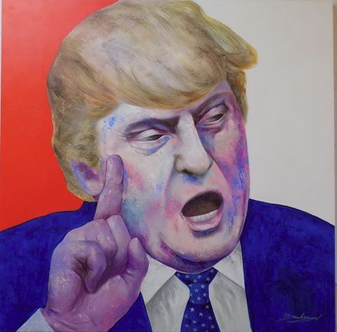 "I hate to tell you", he says in this original painting by Berberyan. It is a 48x48 boxed canvas of acrylic and mixed media.