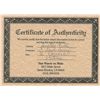 62. All Lots sold by RR Auction are accompanied by a Certificate of Authenticity. On any lot presented with a Certificate of Authenticity (“COA”) issued by RR Auction, that warranty insures only to the original Bidder (as shown in Auctioneer’s records) “Bidder”. Bidder may not transfer the rights afforded under the COA and it is null and void when Bidder transfers or attempts to transfer the lot. The COA warranty is valid from date of the auction in which Bidder was awarded the lot to five (5) years after its purchase. The COA warranty is valid as to its attribution to the person or entity described or to the lot’s usage. The Bidder as well as their heirs, successors and assigns is also given an unconditional lifetime guaranteed that allows the present owner of any lot purchased through RR Auction the right to consign with RR Auction. When the lot is accompanied by a Certificate of Authenticity (or its equivalent) from a third-party authentication provider, buyer has no right of return. On lots not accompanied by third-party authentication or under extremely limited circumstances not including authenticity (e.g. gross cataloging error), a Bidder who did not bid from the floor may request Auctioneer to evaluate voiding a sale; such request must be made in writing detailing the alleged gross error, and submission of the lot to Auctioneer must be pre-approved by Auctioneer. A Bidder must notify the appropriate department head in writing of the Bidder’s request within three (3) days of the non-floor bidder’s receipt of the lot. Any lot that is to be evaluated for return must be received at the office of RR Auction within 35 days after Auction. AFTER THAT 35 DAY PERIOD, NO LOT MAY BE RETURNED FOR ANY REASONS. Lots returned must be in the same condition as when sold and must include any Certificate of Authenticity. If a bidder wishes to challenge the Letter of Authenticity within the five (5) year warranty period, Bidder must present with the claim, authoritative written evidence that the lot is not authentic as determined by a known expert in the field. If Auctioneer concurs that the lot is not as represented, Bidder shall be refunded their purchase price. If the Auctioneer denies the claim, the Bidder may file the dispute with the American Arbitration Association with locale in Boston Massachusetts, Suffolk County, before a single selected Arbitrator selected by the American Arbitration Association. The American Arbitration Association arbitration shall be conducted under the provisions of the Federal Arbitration Act and the Bidder consents to jurisdiction in The Commonwealth of Massachusetts. The challenge to Authenticity must be brought within one (1) year if the Auctioneer denies the claim. After one (1) year, the Bidder hereby releases and discharges RR Auction from any and all legal, equitable, administrative and/or other claims, counterclaims, demands, setoffs, defenses, accounts, suits, debts, dues, actions, causes of action, proceedings, arbitrations, damages, executions, judgments, findings, controversies and disputes, whether known or unknown or suspected or unsuspected, whether in law or equity, that the Bidder have or may have had against RR Auction arising from or relating to any claim whatsoever. Specifically, the COA provided by RR Auction, does not provide for incidental or consequential damages or other indirect damages. Any lot sold with a certificate of authenticity or other warranty from an entity other than Auctioneer is subject to such issuing entity’s rules and such conditions are the sole remedy afforded to Bidder. For information as to third party authentication warranties the bidder is directed to contact RR Auction.