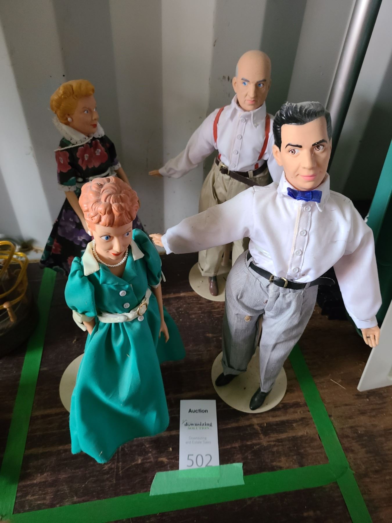 I Love Lucy character dolls in lot. Please note that the oil lamps & other items shown in the image are not included in this lot, only the I love Lucy dolls. Pickup at 9 am.