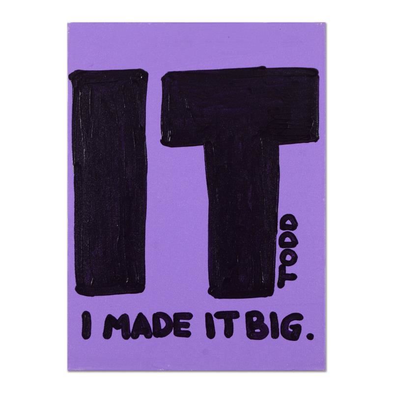"I Made It Big" is an original acrylic painting on canvas by Todd Goldman, hand signed by the artist. This piece comes gallery wrapped. Includes Certificate of Authenticity. Measures approx. 18" x 24" (image). There is minor wear on the corners and edges of the piece.