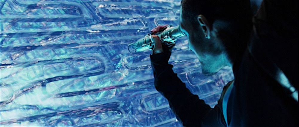 (20th Century Fox, 2004) This prop nanite Injector was custom-made by the production for use by Will Smith as "Del Spooner". Made of rubber and resin with a clear compartment that is filled with liquid, this is the stunt version seen near the end of the film when Sonny throws the injector to Del to inject the nanites into "VIKI" the computer. Measures 13" x 2" in diameter.