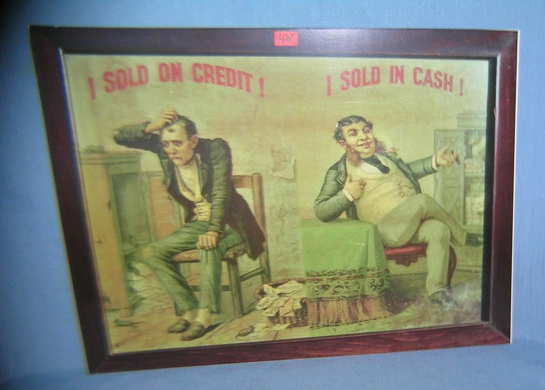I Sold on Credit I Sold in Cash retro style advertising sign 12 inches by 16 inches est. value $40.00-$50.00