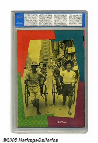 <B>I Spy #1 File Copy (Gold Key, 1966) CGC NM 9.4 Off-white to white pages.</B></I> This issue, with a photo cover featuring Robert Culp and Bill Cosby, is one of the most valuable of the Gold Key TV tie-in books. Overstreet 2004 NM- 9.2 value= $340. CGC census 4/05: 2 in 9.4, none higher.