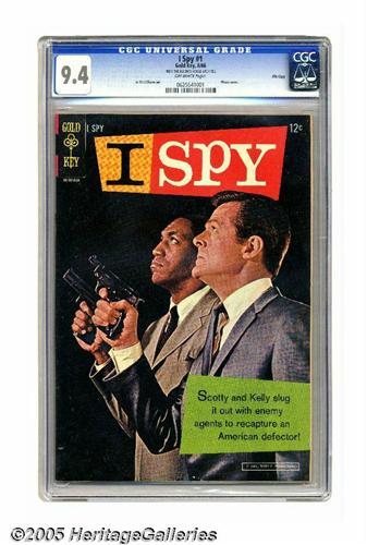 <B>I Spy #1 File Copy (Gold Key, 1966) CGC NM 9.4 Off-white pages.</B></I> This issue features a Bill Cosby and Robert Culp photo cover and interior art by Al McWilliams. Overstreet 2005 NM- 9.2 value = $340. CGC census 7/05: 9 in 9.4, none higher. <I>From the Random House Archives.</B></I>