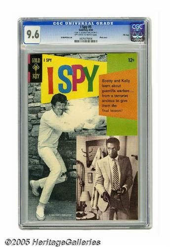 <B>I Spy #5 File Copy (Gold Key, 1968) CGC NM+ 9.6 Off-white to white pages.</B></I> From the hit 1960s television series comes this cool comic book adaptation. The front cover of this fresh file copy features Robert Culp and Bill Cosby (in his first TV series). Al McWilliams gives the art a realistic touch. Overstreet 2005 NM- 9.2 value = $200. CGC census 7/05: 5 in 9.6, 2 higher. <I>From the Random House Archives.</B></I>