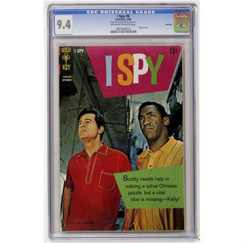 <B>I Spy #6 File Copy (Gold Key, 1968) CGC NM 9.4 Off-white to white pages.</B></I> Photo cover of Robert Culp and Bill Cosby. CGC notes, "From the Random House Archives." Overstreet 2007 NM- 9.2 value = $200. CGC census 10/07: 8 in 9.4, 7 higher.<BR><BR><b>Shipping:</b> Comics - Slabbed (certified) (<a target="_blank" href="http://www.heritageauctions.com/common/shipping.php">view shipping information</a>)