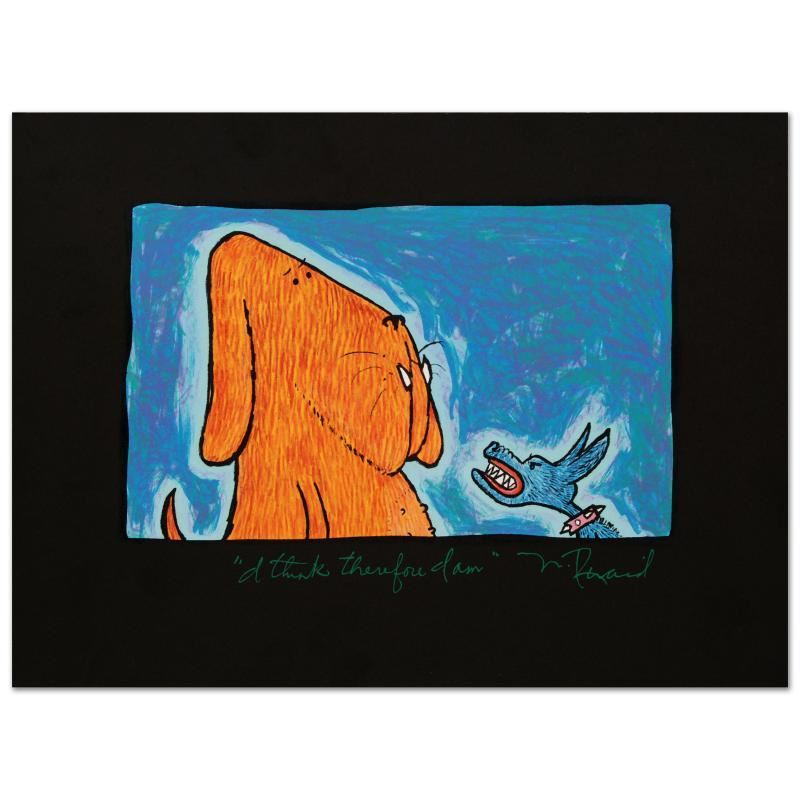 "I Think Therefore I Am" is a limited edition hand pulled original lithograph on museum quality deckle-edge paper, numbered and hand signed by Matt Rinard. Includes Certificate of Authenticity! Measures approx. 15" x 11" (with border), 10.5" x 6.5" (image). This lithograph was created on a rare antique Marinoni Voirin French press that dates back to the 1800's. It provides highly pigmented inks that will resist fading and preserve the integrity of the print for more than a lifetime. This process is the most elaborate, costly and effective way to reproduce art while maintaining the brilliance and accuracy of the original creation.