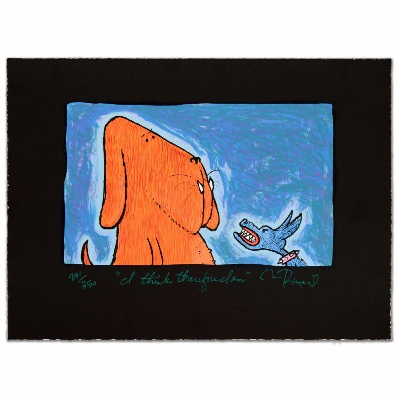 "I Think Therefore I Am" is a limited edition hand pulled original lithograph on museum quality deckle-edge paper, numbered and hand signed by Matt Rinard. Includes Certificate of Authenticity! Measures approx. 15" x 11" (with border), 10.5" x 6.5" (image). This lithograph was created on a rare antique Marinoni Voirin French press that dates back to the 1800's. It provides highly pigmented inks that will resist fading and preserve the integrity of the print for more than a lifetime. This process is the most elaborate, costly and effective way to reproduce art while maintaining the brilliance and accuracy of the original creation.