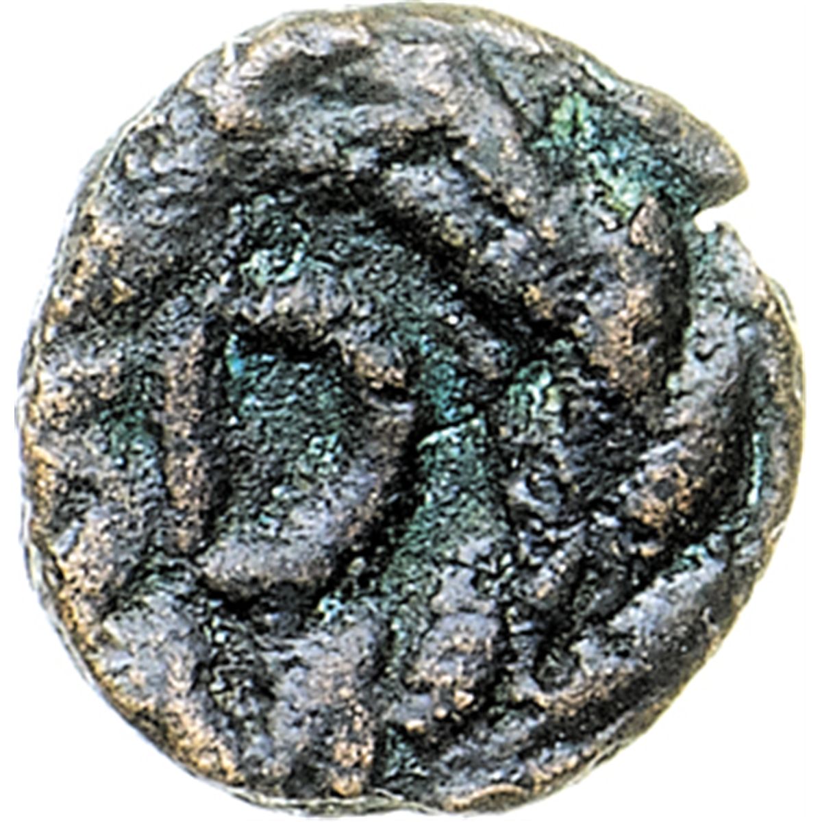 Monete Barbariche. I Vandali in nord Africa. Guntamundo (484-496). Nummo. D/ Busto diademato, paludato e corazzato a destra. R/ D entro corona. MEC 13/14. AE. g. 0.49 mm. 8.00 RR. Bel BB+/BB. La lettera D indica probabilmente il valore (= 1/1500 di siliqua). Molto raro e di alta qualitv†, eccezionale per il tipo.