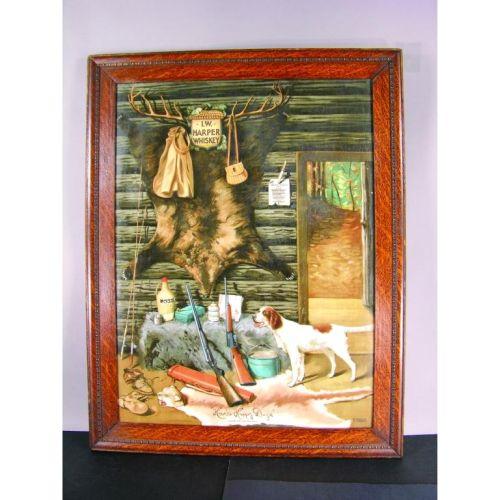 I.W. Harper Whiskey Vitrolite Sign, entitled, Heres Happy Days, 1909. In period oak frame, excellent condition. 21 1/2 X 28 inches overall.