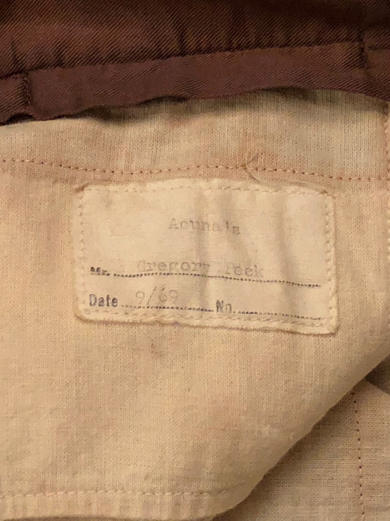 I Walk The Line (1970) Gregory Peck's "Sheriff Tawes" Brown Police Pants W/COA - These brown police pants were worn by actor Gregory Peck as he portrayed the character "Sheriff Tawes" in the 1970 motion picture I Walk The Line. The custom made pants contain an internal Acuna tailor label with "Mr. Gregory Peck, 9/69" typed in black ink (slightly faded due to age). The pants will be accompanied by a certificate of authenticity.