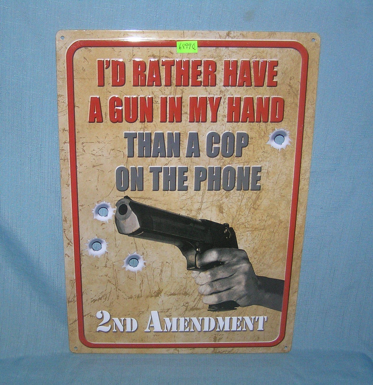 I'd rather have a gun in my hand then a cop on the phone second amendment sign est. value $40.00-$50.00