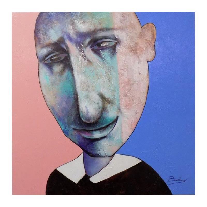 "I'm Drawing A Blank" is an original mixed media painting on canvas from the talented Ara Berberyan. The piece is hand signed and comes with a Certificate of Authenticity. Piece measures approximately 30"x30" (image).