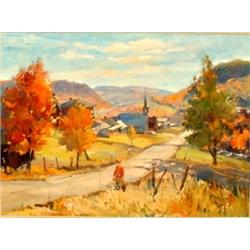 IACURTO, Francesco, R.C.A., 1908- . "St. Adolphe, 25 miles from Quebec". Huile sur toile, signée et datée "1969". Signée et titrée verso. Oil on canvas, signed and dated "1969". Signed and titled verso. Provenance: Overseas Bankers Club, London, England. Presented by the Bank of Montreal on the occasion of the 100th anniversary of the Bank's main London branch, in 1970. 24" x 30" - 61cm x 76.2cm. $4000/5000
