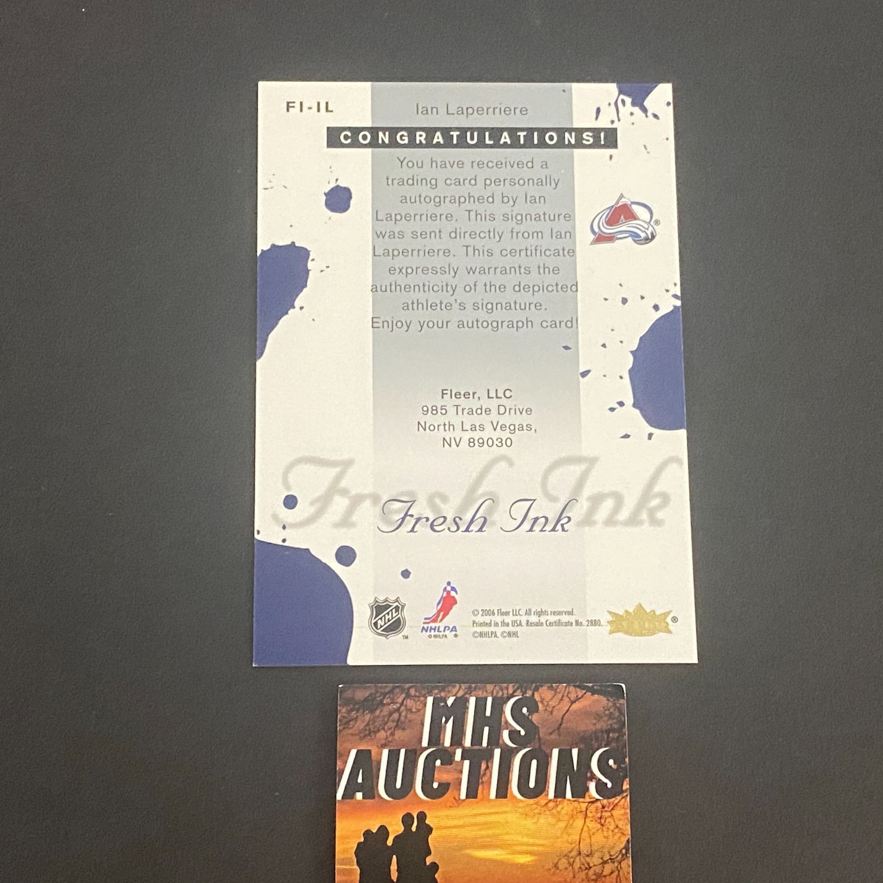 IAN LAPERRIERE COLORADO AVALANCHE AUTOGRAPH CARD