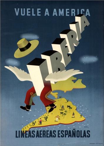 VELLVE, TOMAS. IBERIA LINEAS AEREAS. 1950. 60x40cm. (23,6x15,7in.). Litografía. A-.