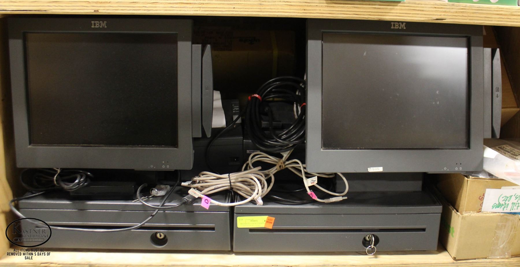 IBM POS SYSTEM W/ 2 SCREENS, 2CASH DRAWERS, SCALE,