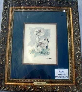 CIRCA 1945 ORIGINAL ETCHING IN COLORS ,MINT W/COA APPROX. 22X26 ,355 EVER PUBLISHED