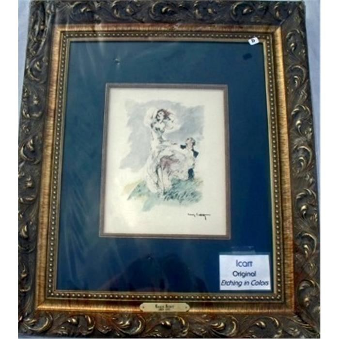 CIRCA 1945 ORIGINAL ETCHING IN COLORS , MINT W/COA APPROX. 22X26 , 355 EVER PUBLISHED