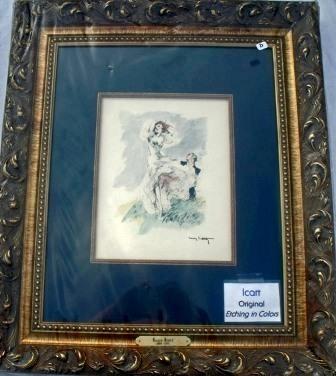 CIRCA 1945 ORIGINAL ETCHING IN COLORS , MINT W/COA APPROX. 22X26 , 355 EVER PUBLISHED