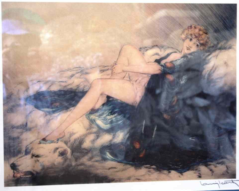 LOUIS ICART - "SILK ROBE"- LTD EDITION LITHOGRAPH - PROFESSIONALLY FRAMED AND MATTED - MINT CONDITION - SIGNED IN THE PLATE - FRAMED SIZE APPX 28X32