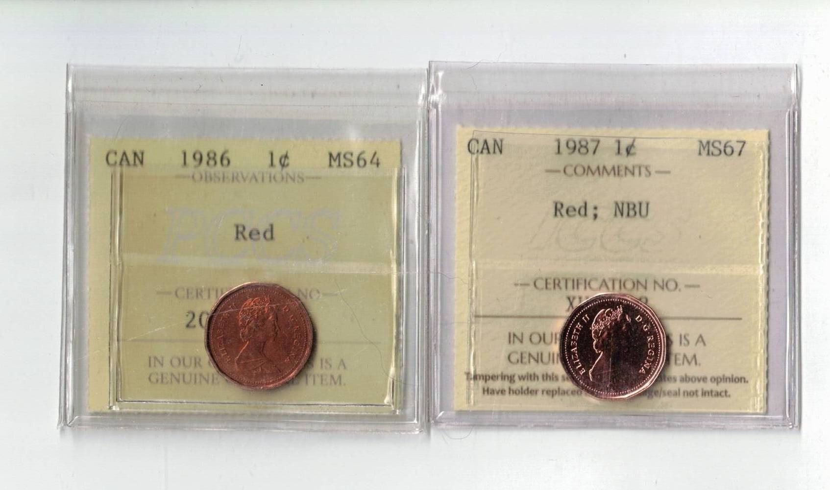 PCCS 1986 1¢ MS64 , Professional Coin Certification System