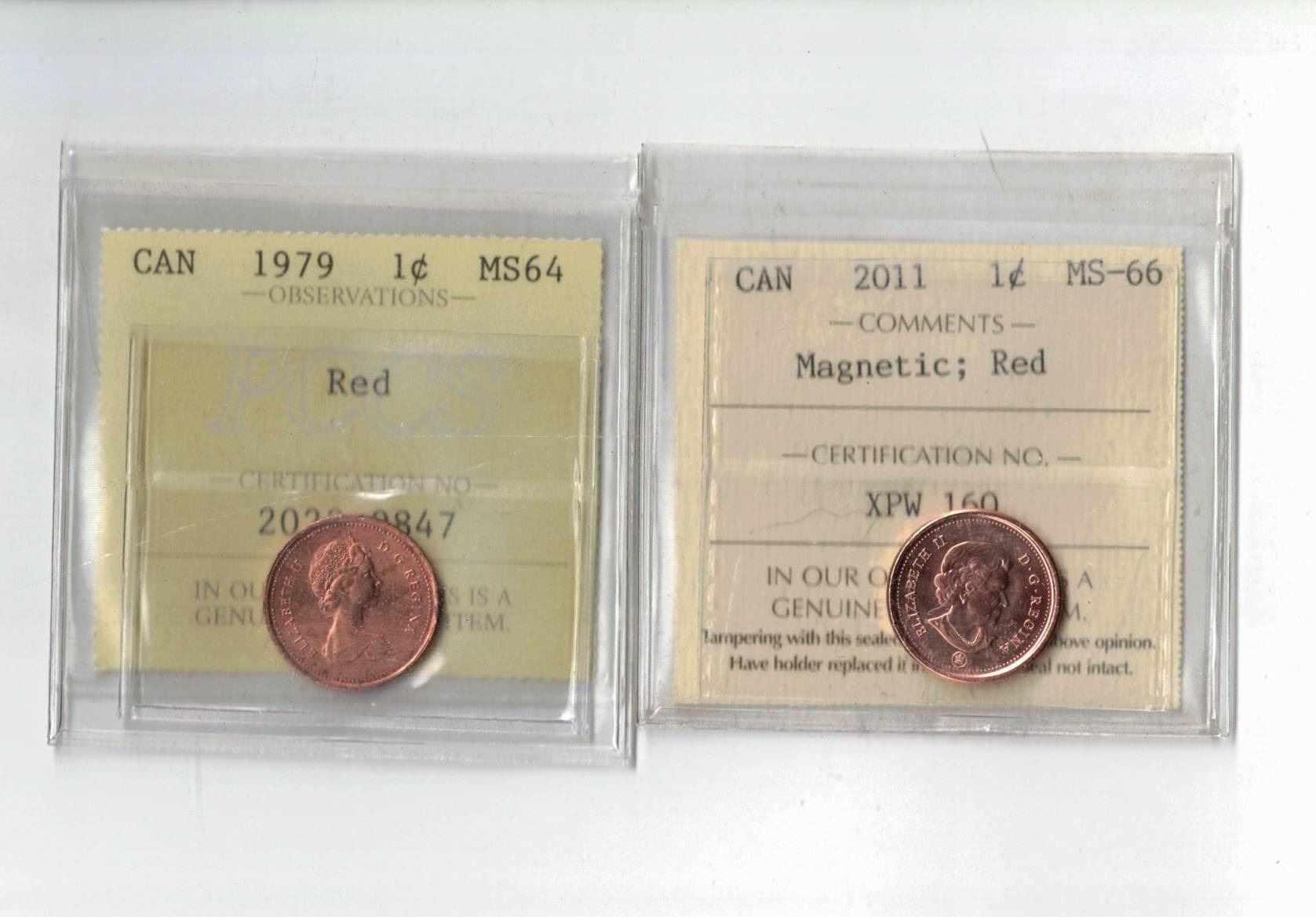ICCS 2011 1¢ MS66 Magnetic , PCCS 1979 1¢ MS64, Professional Coin Certification System