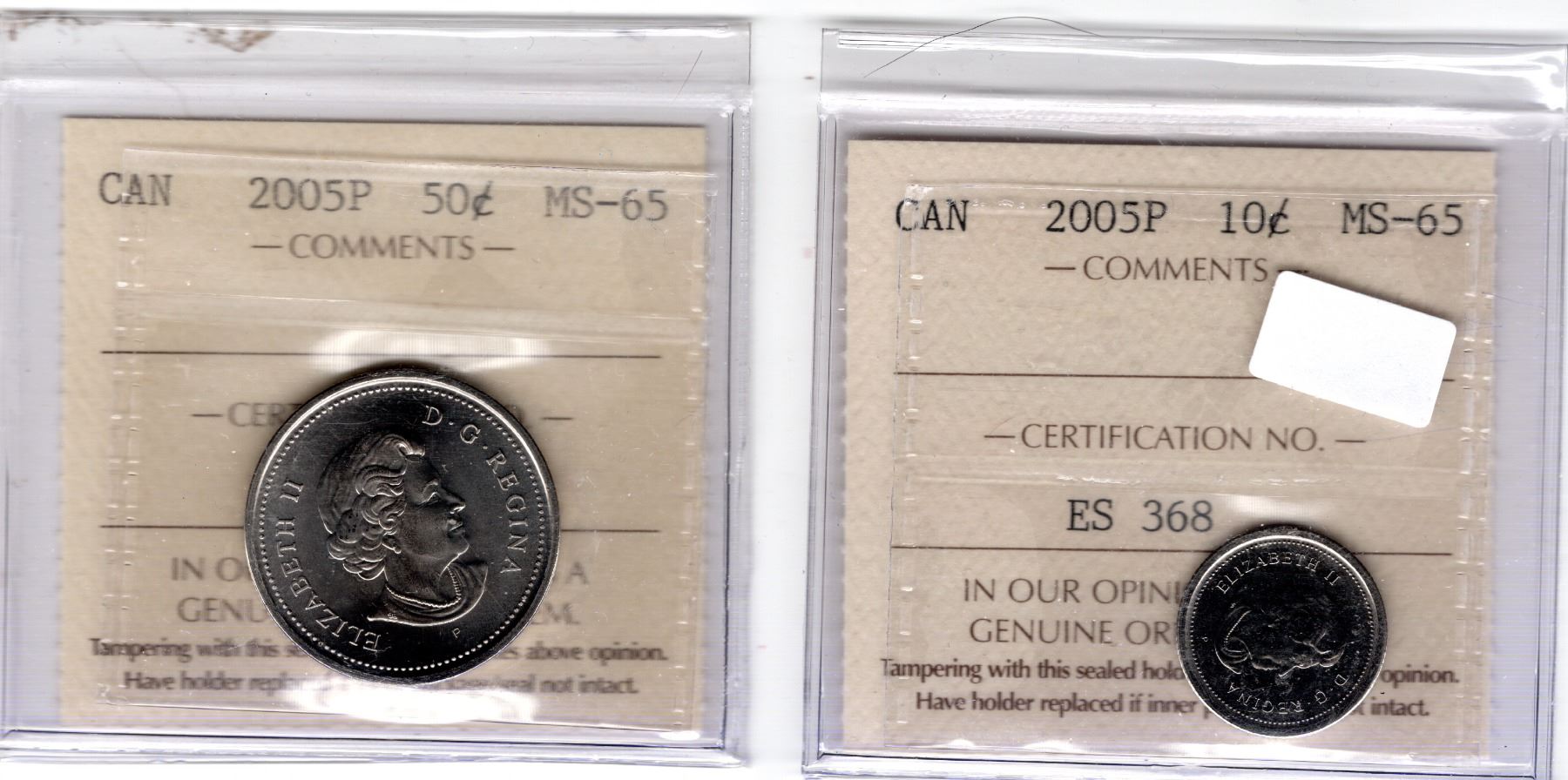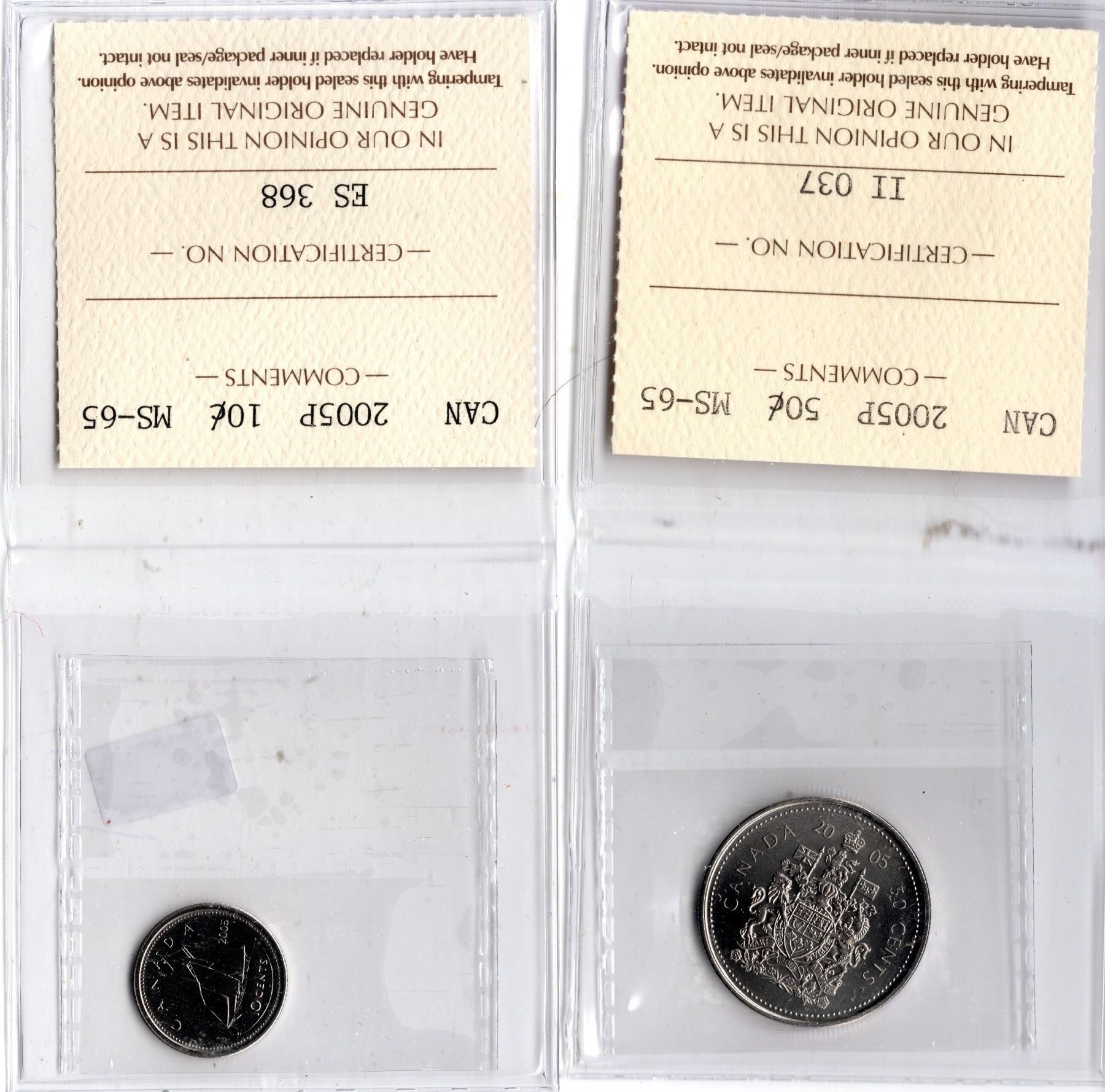 ICCS CERT, MS 65, 2005P 50 CENTS & 10 CENTS