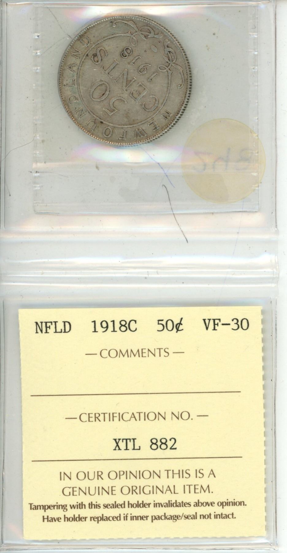 ICCS - NFLD 1918C 50 Cent VF-30
