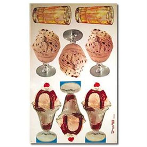 old vintage LEMONADE ICE CREAM DISH SIGN POSTER 8 images, dated 1950 -- 35X22; Pure Americana, full color poster intended to be utilized as point-of-purchase displays for dime store, luncheonettes, and soda fountains. Uncut print contains multiple graphic images that are ready to be displayed as is or trimmed into individual pieces