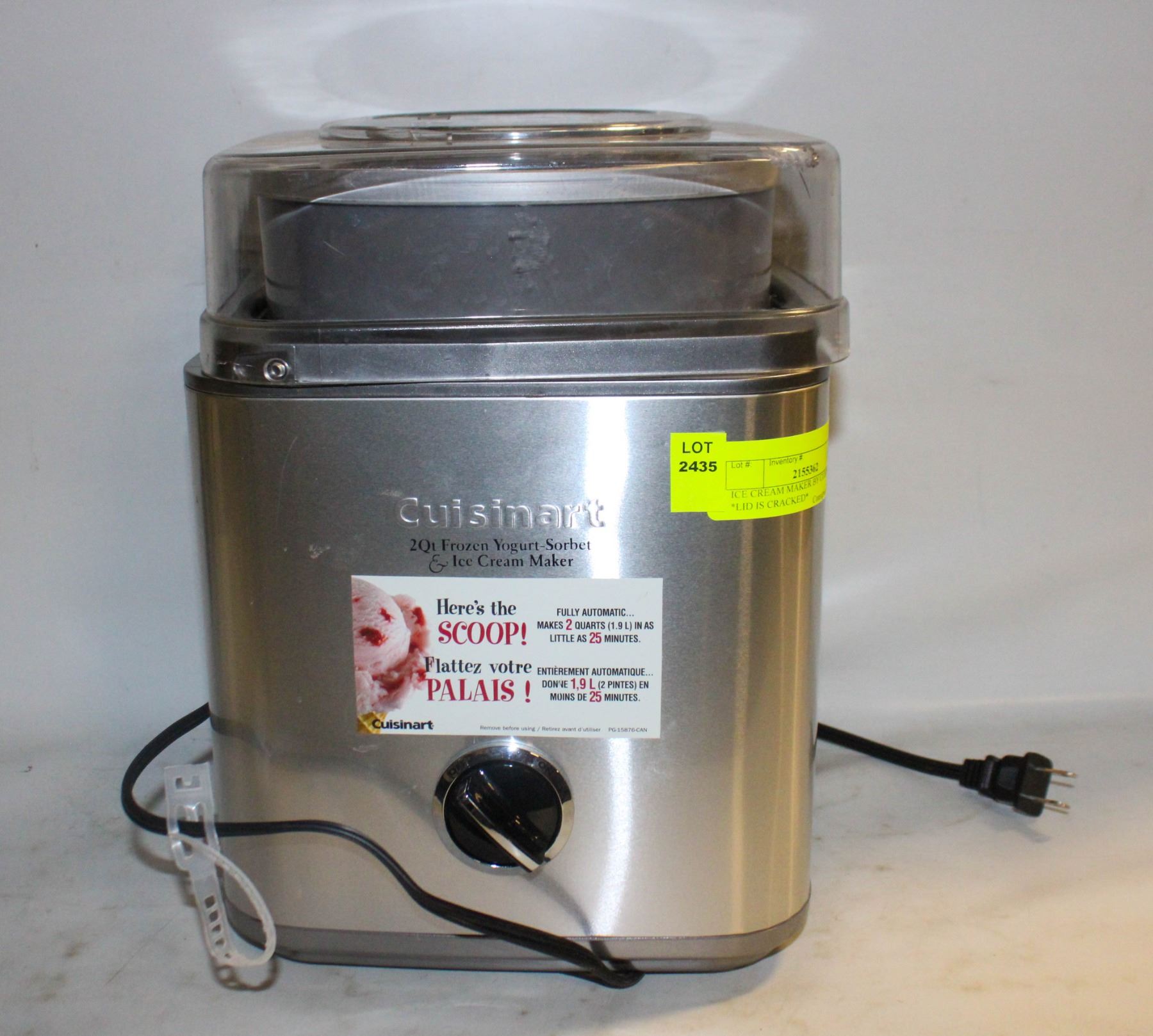 ICE CREAM MAKER BY CUISINART *LID IS CRACKED*