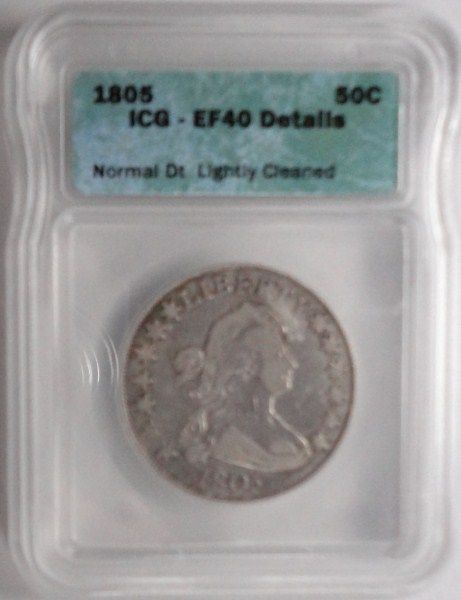 ICG 1805 Half $, EF40 Details, lightly cleaned quite nice for grade!!