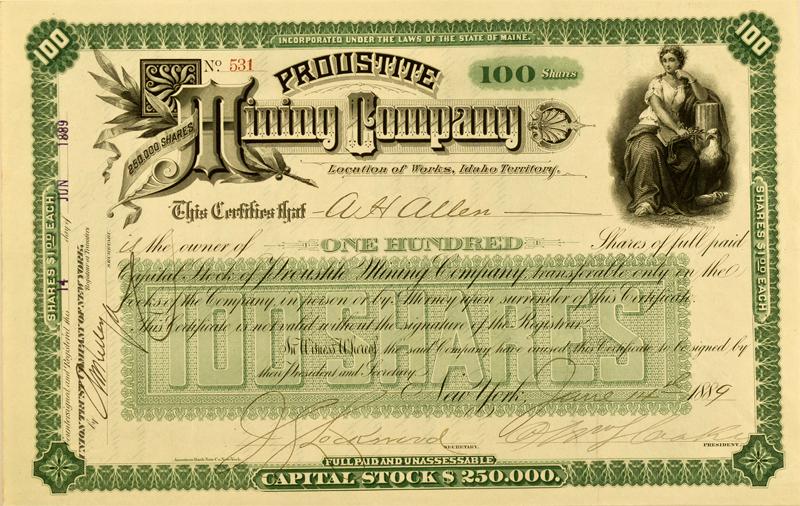 ID - June 14, 1889 - Proustite Mining Company Stock :