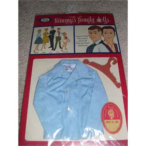 IDEAL Tammy's Family Dad & Ted Outfit MIP.The item number is 9451-6-100 . It is a blue cotton shirt for Dad or Ted. Item comes from a smoke free environment. Buyer to pay $8 for shipping, handling, and insurance. Thanks for viewing.