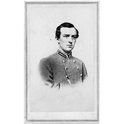 A fine carte de visite photograph showing Confederate Lt. Joseph Selby from mid-chest, up, with one hand tucked into his jacket. Selby enlisted in the 21st Virginia Infantry on May 23, 1861 and served with that regiment until May 23, 1862 when he was mustered out at Fort Royal. In the interim, the regiment was under the command of Loring serving in the Army of the Northwest and in the Valley. This same image appears on p. 128 of Albaugh's "Confederate Faces". No backstamp, near fine condition.