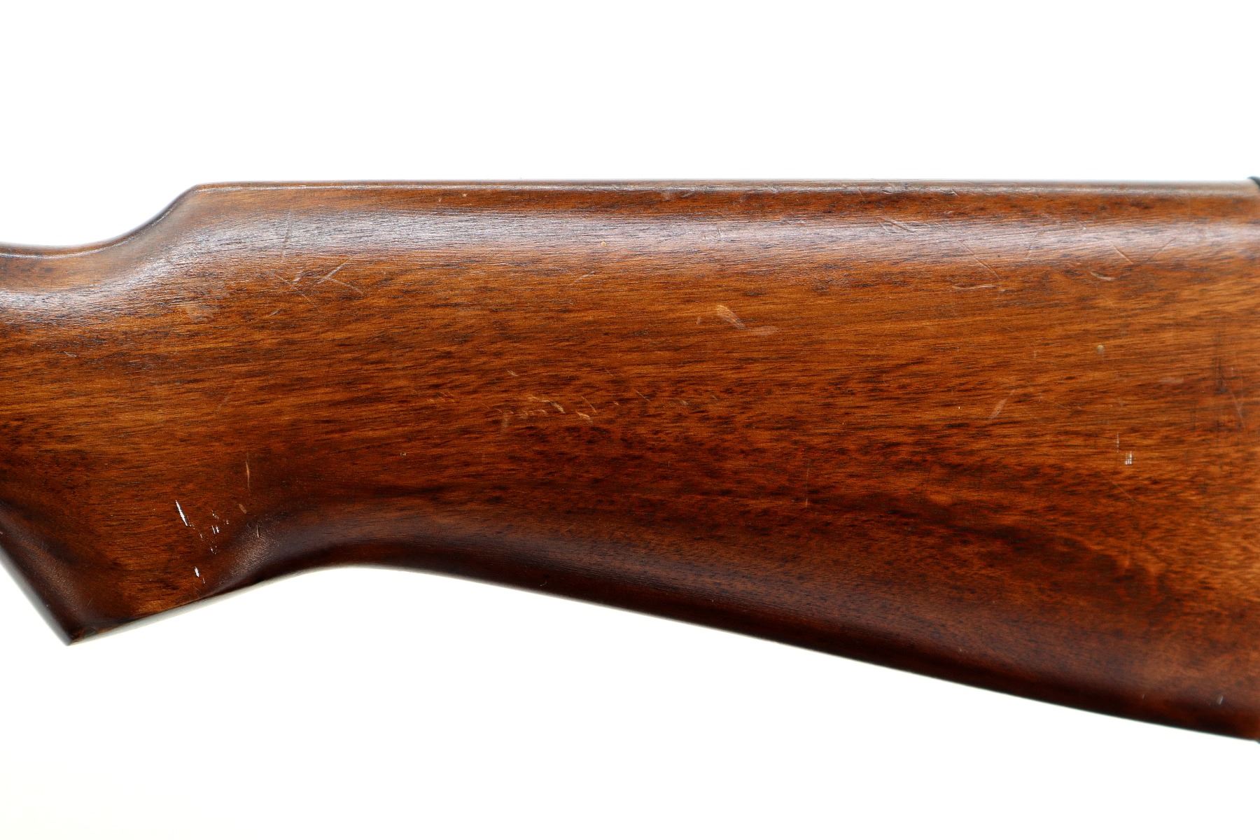 Main Description: Brass bead, blued finish, round barrel, grooved spur hammer, extractor, opening lever in front of trigger guard. Two piece wood stocks, pistol grip, black vented rubber recoil pad.