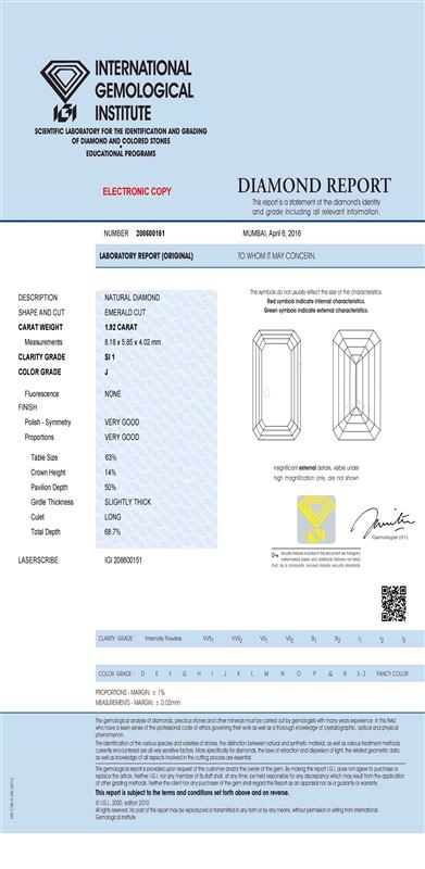 IGI/Emerald/J/SI1/1.92Ct/VG/VG/#208600151/#F51492