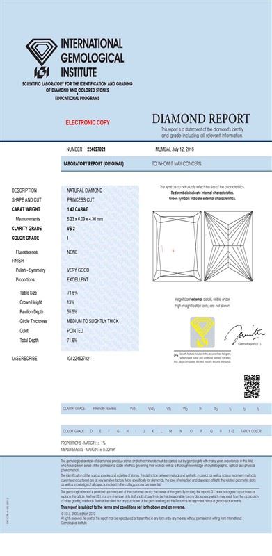 IGI/Princess/I/VS2/1.42Ct/VG/VG/#224627821/#S54218