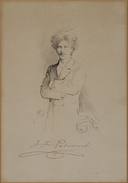 Fine association signed etching, 6 1/2" x 9 1/4" (sight), an etching of the distinguished pianist shown three-quarter length with arms folded, boldly signed at bottom in dark ink: I. J. Paderewski" adding an ornate paraph. Matted and set into a simple frame. What distinguished this signed image is an accompanying Apr. 29, 1893 letter by principal E. A. Potter on the letterhead of "Lyon, Potter & Co. Steinway Pianos" in Chicago. Potter presents this signed engraving to a "Mr. Ellsworth", noting: "...I have prized it very highly...[I] know it will pass to appreciative ownership of one whose acquantance I am just learning [to] estimate at its true value...". Steinway sponsored Paderewski's frenetic 1892-93 tour in which he played 75 concerts, the last of which was scheduled for the opening day of Chicago's World Columbian Exposition on May 1, 1893 - two days after Potter sent the engraving to Ellsworth. President Grover Cleveland was to speak at the opening, and Paderewski was set to perform. However, a furor arose over the use of a Steinway, with Chicago's Kimball Pianos insisting that their piano be used - against Paderewski's wishes. A national commission was convened, and it was only on the day of the opening that Paderewski's Steinway - now at the Smithsonian - was finally approved. The mysterious "Ellsworth" could have been no other than James W. Ellsworth, Director of the World Columbian Exposition!