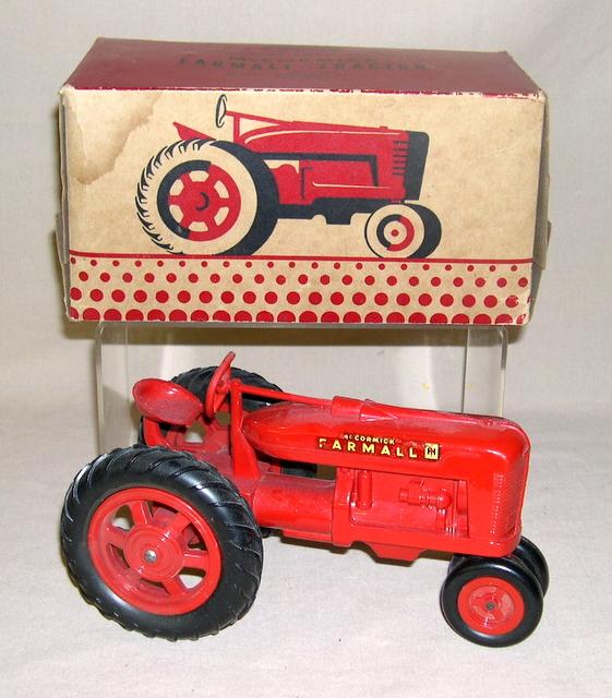 Toy is near mint, Box is marked "McCormick Farmall Tractor", Box is complete, has some wear and light stains