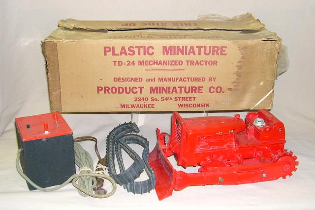tracks are broken, has some scuffs, but includes mufflers and drawbars, don't know if it works or not, Box is complete, has partial box liner, overall box has quite abit of wear