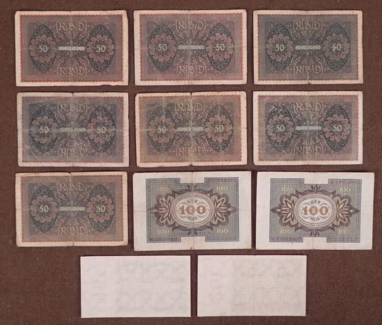 II GERMAN PRE-WAR (WWII) CURRENCY NOTES-7 -50 MARKS--4 -100 MARKS * * HISTORICAL ORIGINAL CURRENCY * * *