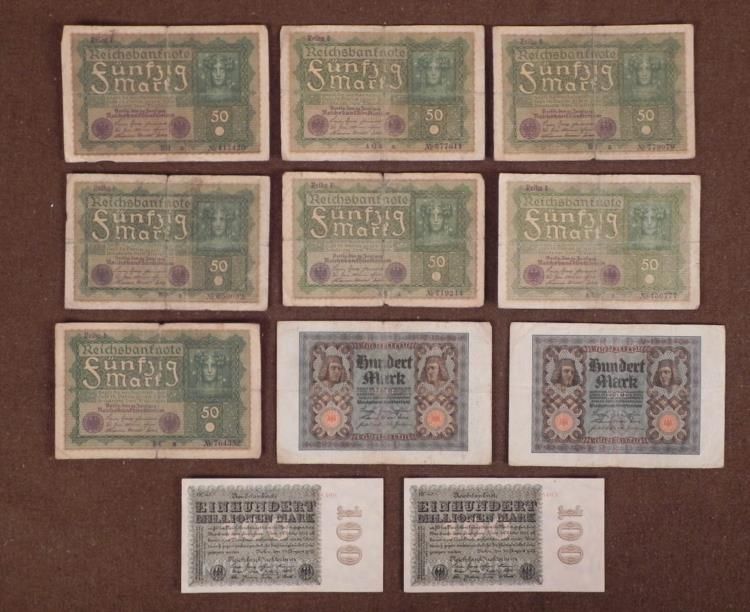 II GERMAN PRE-WAR (WWII) CURRENCY NOTES-7 -50 MARKS--4 -100 MARKS * * HISTORICAL ORIGINAL CURRENCY * * *