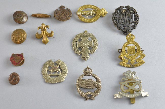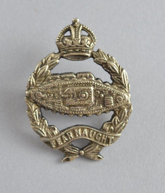 II pattern K.C. Tank Corps officer's beret badge cast in solid silver, the verso with twin eyelets and .800 silver content mark, together with a collection of I.W.W./II.W.W. British cap badges/buttons, etc.