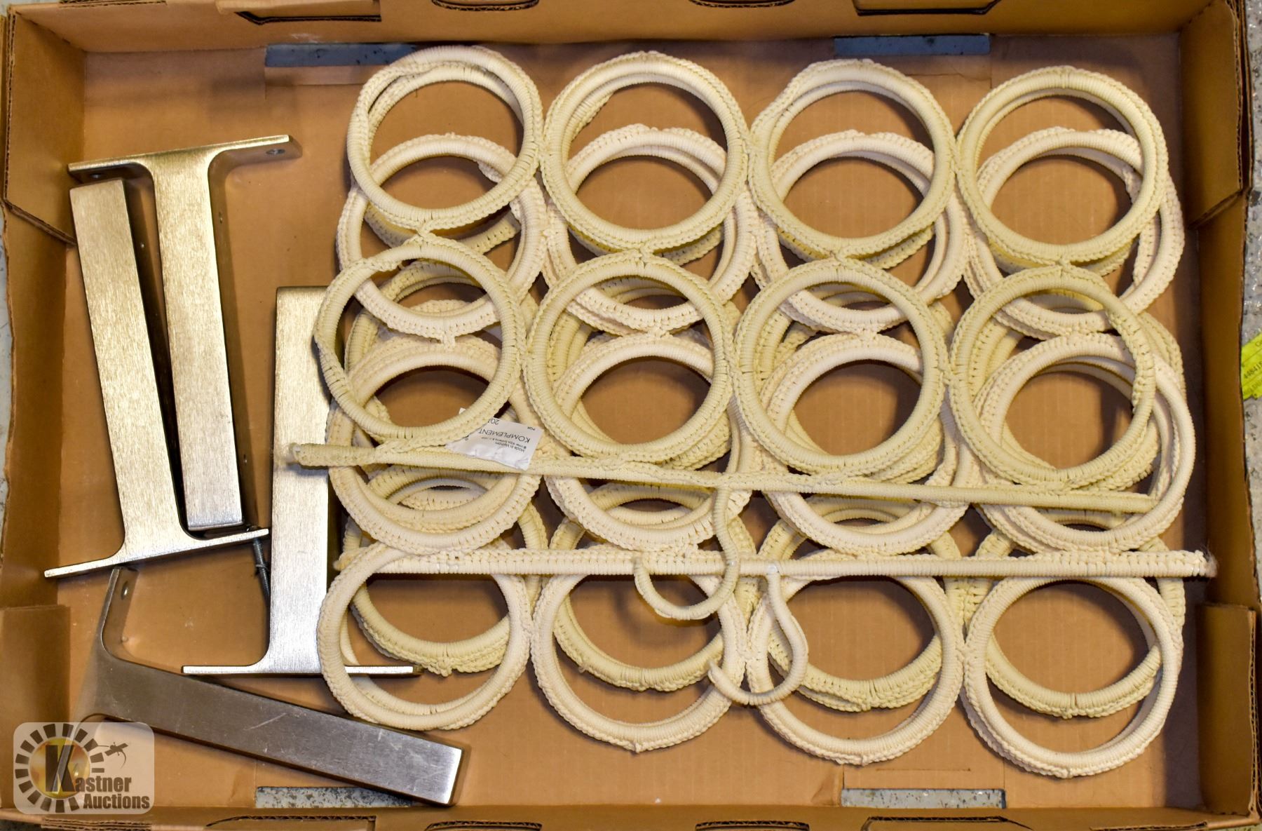 LOT OF 2 CROCHETED SCARF HOLDERS, & 4 SILVER METAL SHELF BRACKETS