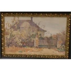 ILLES, Aladar Evi, 1870-1958. "A View of the House from the Road". Aquarelle, signée. École hongroise. Watercolour, signed. Hungarian School. 8" x 11 3/4" - 20.2cm x 29.8cm. $400/600