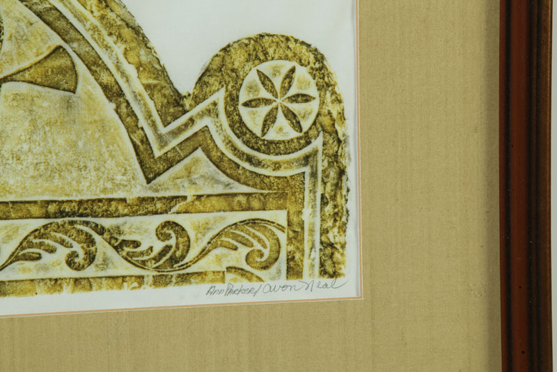 ILLUMINATED LEAF, EARLY NEWSPAPER, AND TOMBSTONE RUBBING.